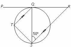 In the diagram, PR is a tangent to the circle at Q , $QT\parallel RS$, $\angle SQR=35{}^\circ $and $\angle RSQ=50{}^\circ $Find the value of $\angle QST$