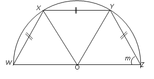 The diagram shows a trapezium inscribed in a semi-circle. If O is the mid-point of WZ and $\left| WX \right|=\left| XY \right|=\left| YZ \right|$, calculate the value of m