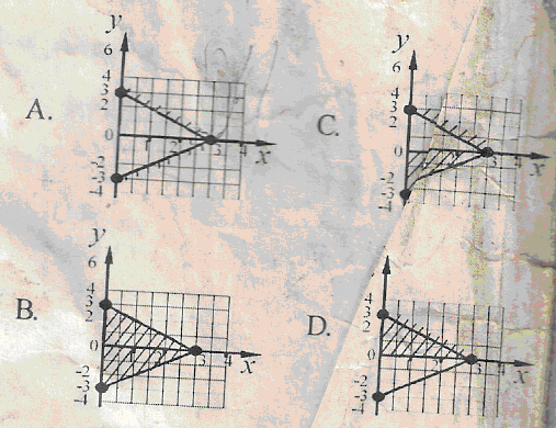 Jambmaths question: The shaded area that gives the solution set for the inequalities $x+y\le 3,x-y\le 3$, is Jamb Maths Solution: option A Jamb Maths Topic: InequalityYear of Exam: Jamb Maths 2008