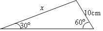 $\begin{align} & \tan {{60}^{\circ }}=\frac{x}{10} \\ & \sqrt{3}=\frac{x}{10} \\ & x=10\sqrt{3} \\\end{align}$