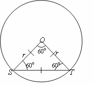 The chord ST of a chord ST of a circle is equal to the radius r of the circle. Find the length of the arc ST.