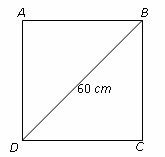 $\begin{align} & \text{Since all the sides of a square are equal, that is} \\ & AB=BC=CD=DA \\ & \text{Let }AB=BC=CD=DA=x \\ & \text{Using pythagoras theorem} \\ & B{{D}^{2}}=D{{C}^{2}}+C{{B}^{2}} \\ & {{60}^{2}}={{x}^{2}}+{{x}^{2}} \\ & 3600=2{{x}^{2}} \\ & 1800={{x}^{2}} \\ & x=\sqrt{1800}=30\sqrt{2}cm \\ & \text{The perimeter of the square }=4x=4\times 30\sqrt{2}cm=120\sqrt{2}cm \\\end{align}$
