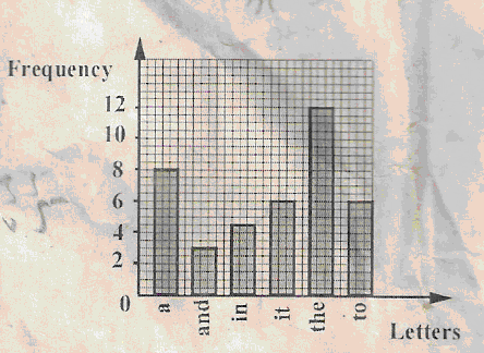 The bar chart above shows the number of times the words a, and, in, it, to appear in the paragraph in a book. What is the ratio of the least frequent word to that of the most frequent word.