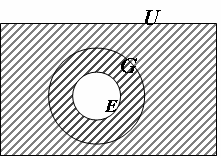 Jambmaths question: If $E\subseteq G\subseteq U,$where U is the universal set, then the shaded venn diagram representing U – E or Ec Jamb Maths Solution: Jamb Maths Topic: Set theoryYear of Exam: Jamb Maths 2006