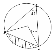 XYZ is a circle centre O and radius 7cm.Find the area of the shaded portion.