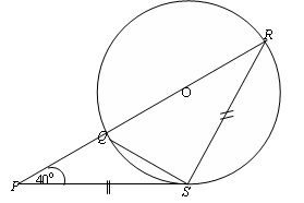 In the diagram above, PQR is a straight line and PS is a straight line and PS is a tangent to the circle QRS with $\left| PS \right|=\left| SR \right|$ and $\angle SPR={{40}^{o}}$.Find $\angle PSQ$
