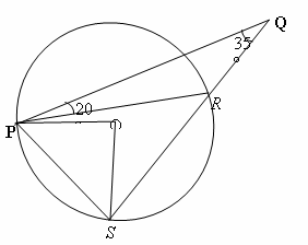 P, R and S lies on a circle centre O as shown above, while Q lies outside the circle. Find $\angle$PSO