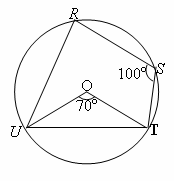 In the diagram above, O is the centre of the circle $\angle UOT=70^\circ$ and $\angle RST=100^\circ$ Calculate $\angle RUO$