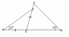 In the figure below, PQR is a straight line segment, PQ = QT . Triangle PQT is an isosceles triangle. $\angle QPT$ is 25o . Calculate the value of $\angle RST$