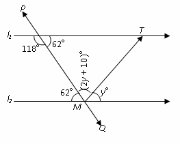 In the diagram above l1 is parallel to l2. Find the value of $\angle PMT$