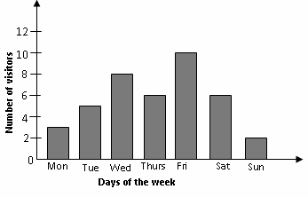 The bar chart above shows the number of visitors received in a week. How many visitors were received on Friday, Tuesday and Sunday?