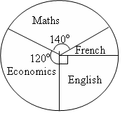 The pie chart above shows the distribution of courses offered by students. What percentages of the students offer English?