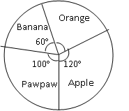 The pie chart represents fruits on display in a grocery shop. If there are 60 oranges on display, how many apples are there?