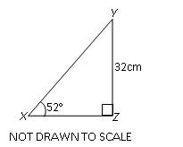 In $\Delta XYZ$, $\left| YZ \right|=32cm$, $\angle YXZ=52{}^\circ $ and $\angle XZY=90{}^\circ $ Find, correct to the nearest centimetre, $\left| XZ \right|$ |
